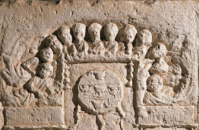 “… en el triclinio a cada decurión le será entregado vino mulso, bollos y 10 sestercios. Igualmente, a aquellos jóvenes que participarán en la curia y a los seviros augustales se les dará bollos, mulso y 8 sestercios y en mi triclinio además un sestercio a cada hombre…” (inscripción en la estatua pública de Aulo Quintilio Prisco CIL X 5853)